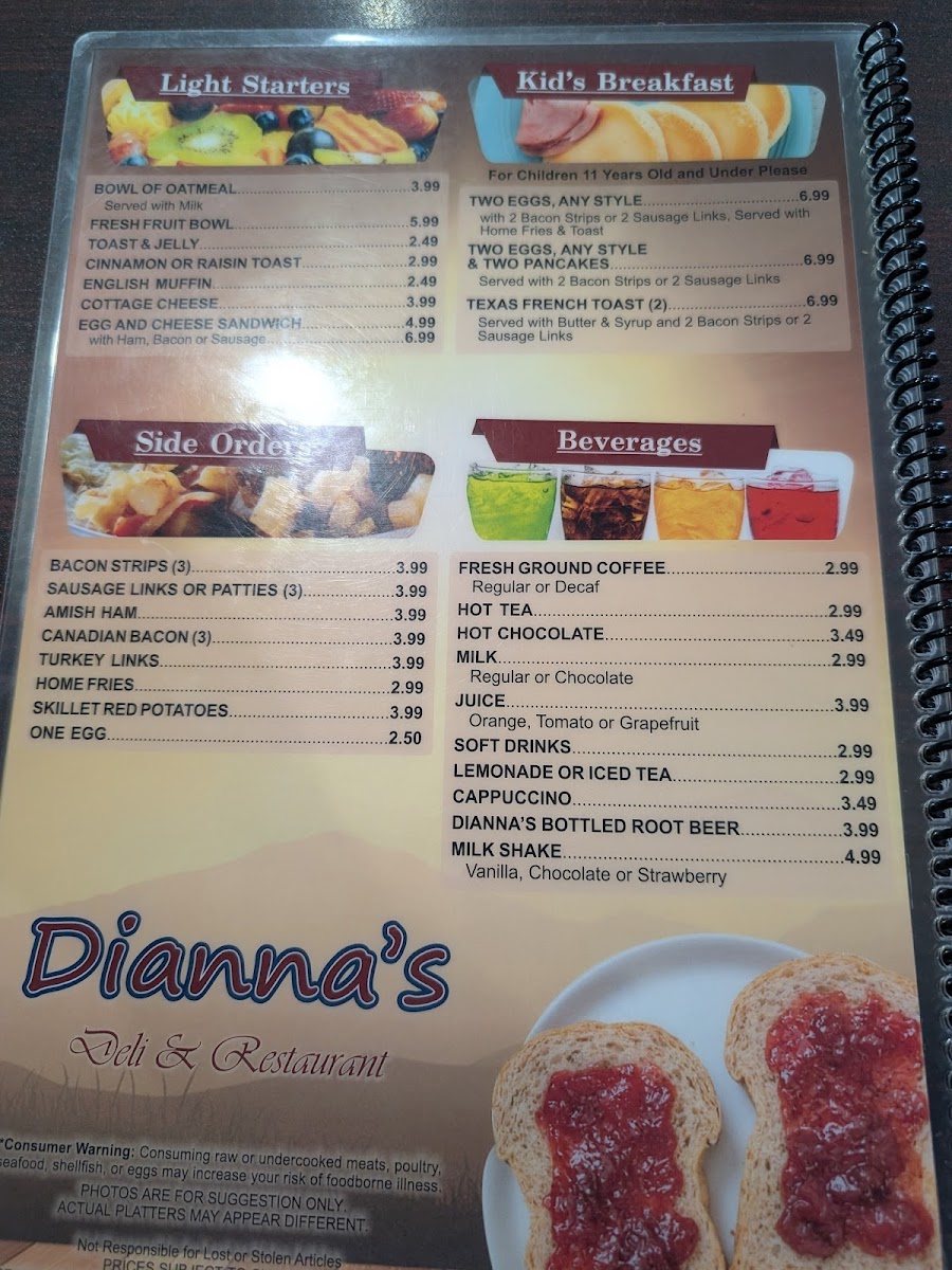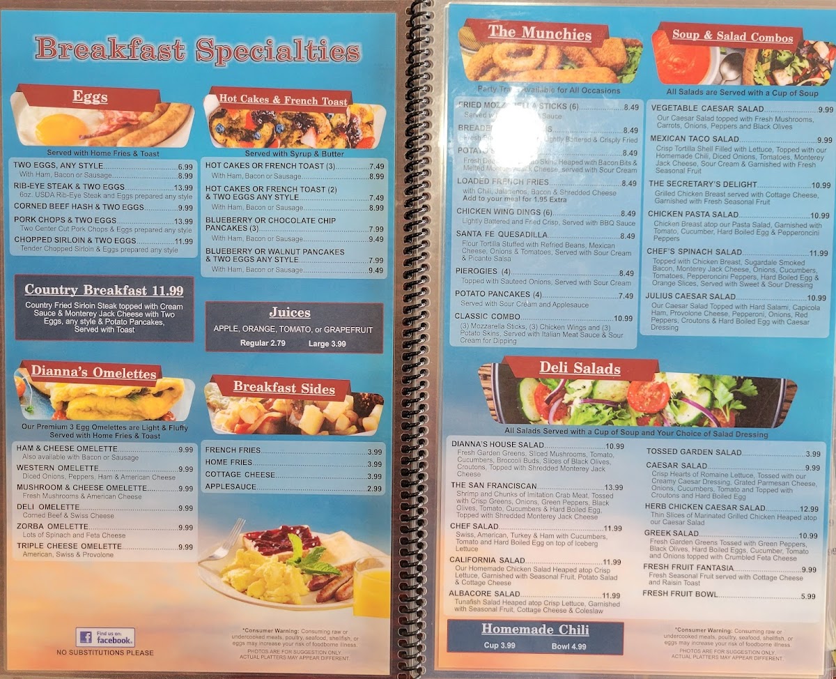 Dianna's Deli & Restaurant - Sandusky, OH Menu
